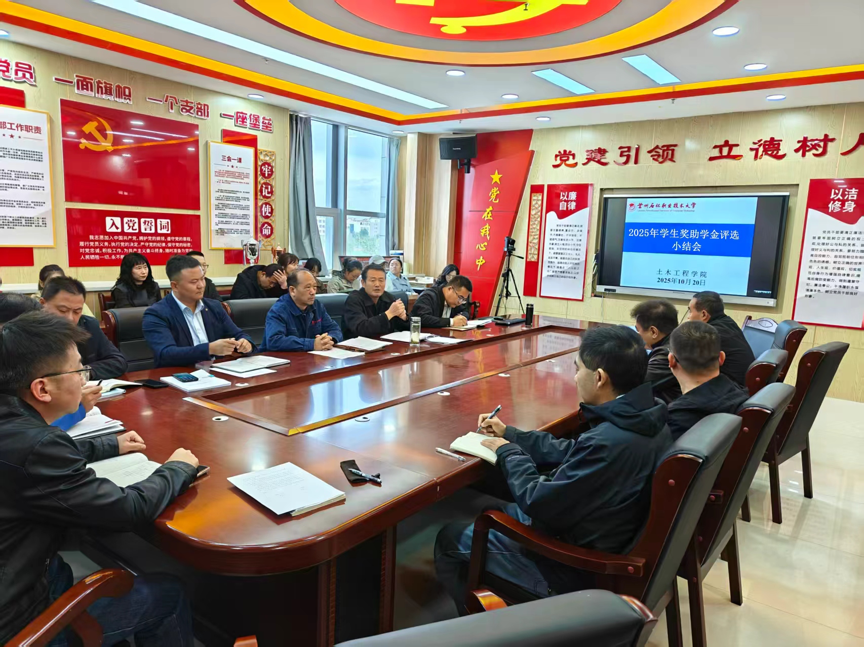 为确保本年度奖助学金评选工作规范、公平、高效开展,充分发挥奖助学金在激励学生勤奋学习、帮扶家庭经济困难学生方面的重要作用,同时在推进“一学五查双促进”活动中扎实走深走实,切实以活动成效推动各项工作高质量发展,2025年10月20日,土木工程学院在综合楼会议室召开2025年度奖助学金评选工作小结会暨“一学五查双促进”活动推进会。学院学生工作负责人、辅导员、班主任参加会议,会议由学生工作负责人王书记主持。