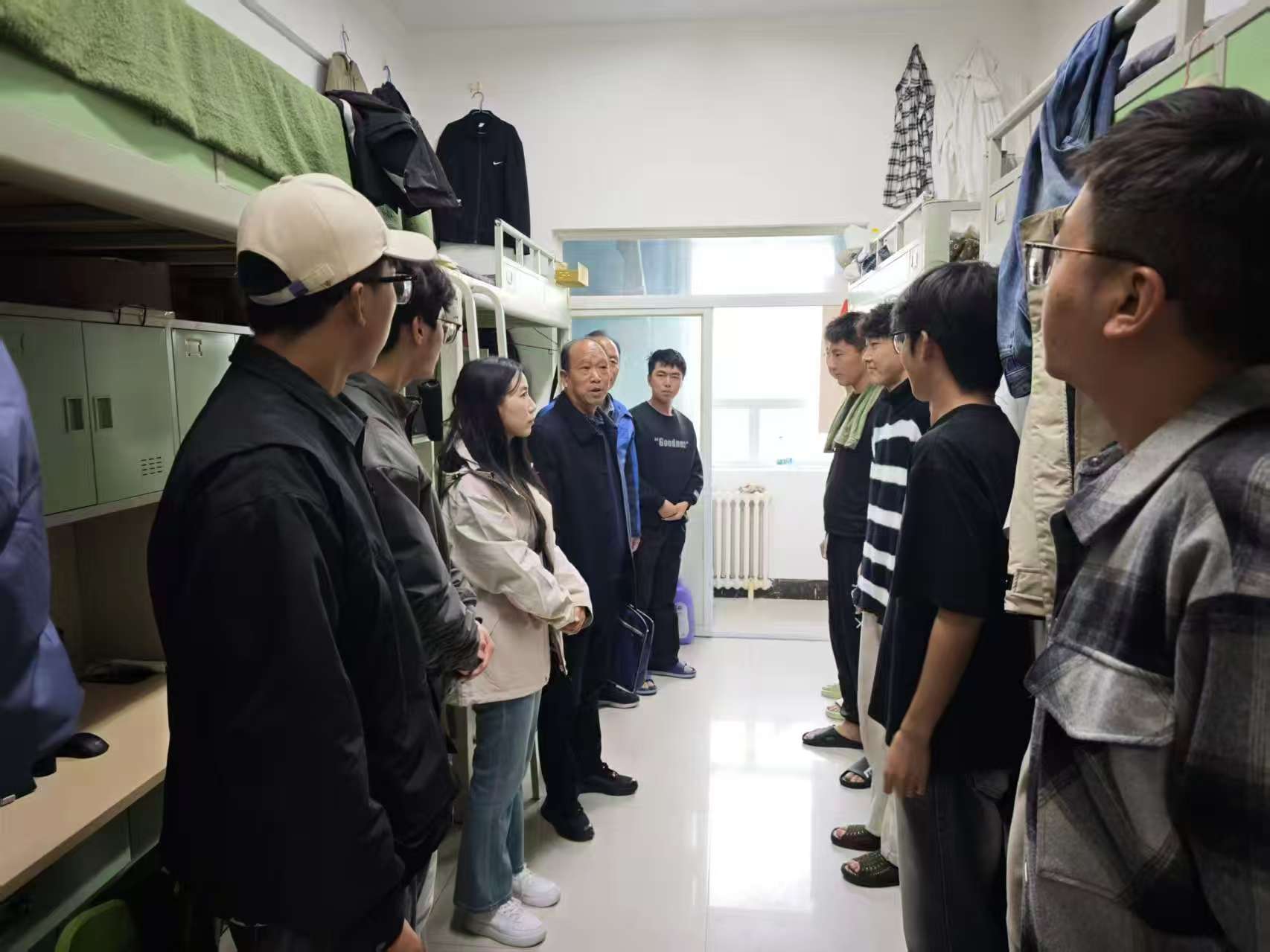 为深入推进“一学五查双促进”活动走深走实,切实保障学生居住安全与身心健康,营造整洁、有序、安全的宿舍环境,10月24日下午16:00,由学院董书记带队组成专项检查组,学生宿舍开展卫生安全全覆盖检查,全体辅导员和班主任参加。