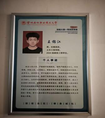 在公寓连廊楼道的显眼位置,一幅幅精心设计的展板向过往学生展示了历届国家奖学金获得者的奋斗历程和宝贵经验。这些优秀学子的先进事迹成为了激励同学们奋发向上的生动教材。技能大赛获奖者的展示板块同样吸引了众多学生的目光,他们用实际行动证明了“技能改变命运”的理念。