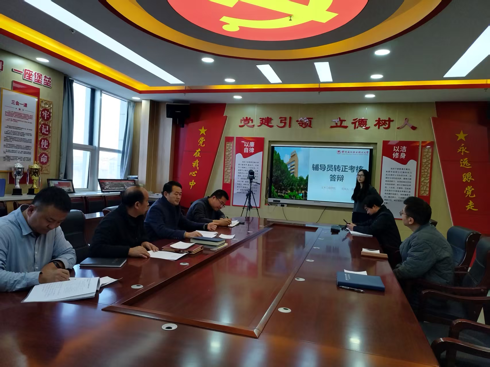 为进一步加强辅导员队伍建设,全面检验新引进专职辅导员的履职能力与工作成效,近日,土木工程学院在学院会议室召开新引进专职辅导员转正考核答辩会。学院领导班子成员、办公室人员及老师代表组成考核小组,对新引进专职辅导员进行全面考核。