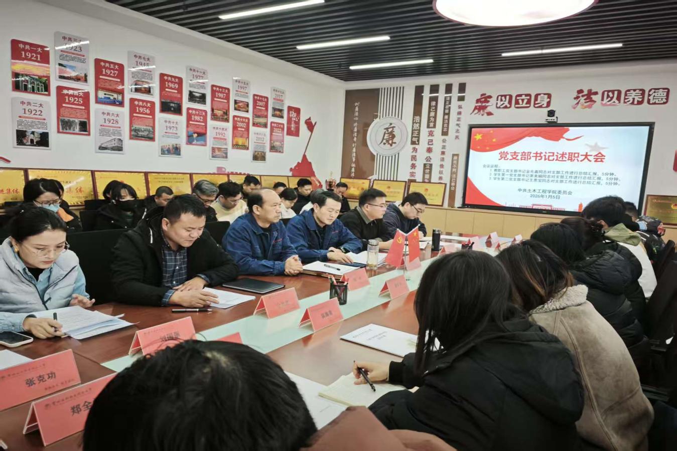 为深入总结2025年度基层党建工作成效,压实管党治党政治责任,推动全面从严治党向基层延伸,进一步提升党支部标准化规范化建设水平,1月5日,土木工程学院党委组织召开2025年度各党支部书记述职大会。学院党委书记主持会议并讲话,学院党委班子成员、各党支部书记、师生党员代表参加会议。