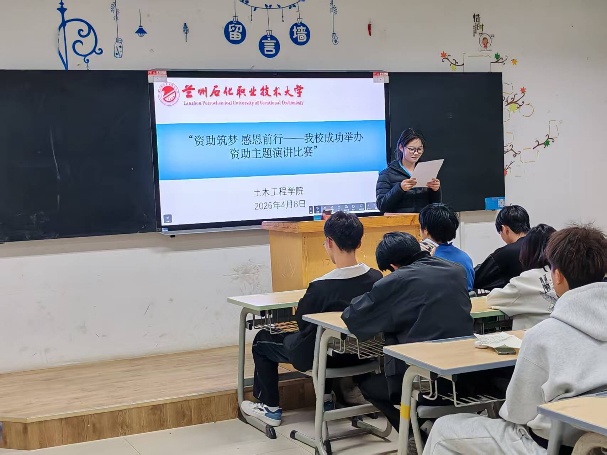 为深入宣传国家资助政策,强化资助育人成效,激励广大学子立志成才、感恩奉献,2026年4月14日土木工程学院举办了“资助筑梦·感恩奋进”主题演讲比赛。本次比赛由学院辅导员担任评委,各年级学生代表到场观赛。